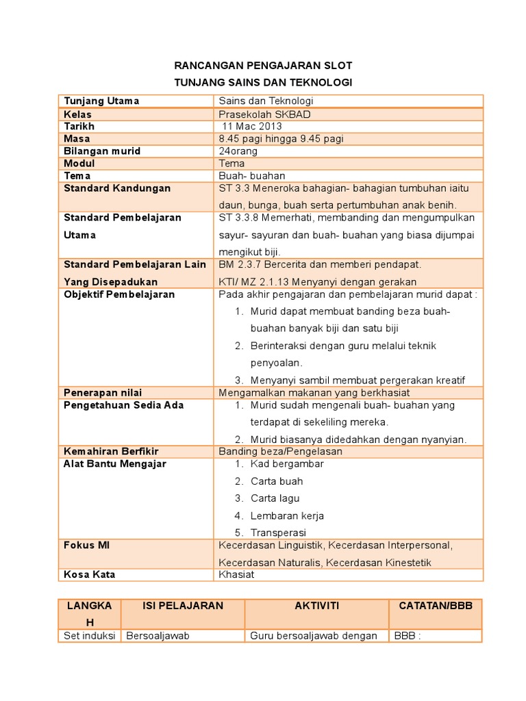 Rancangan Pengajaran Slot Tema Buah Pdf